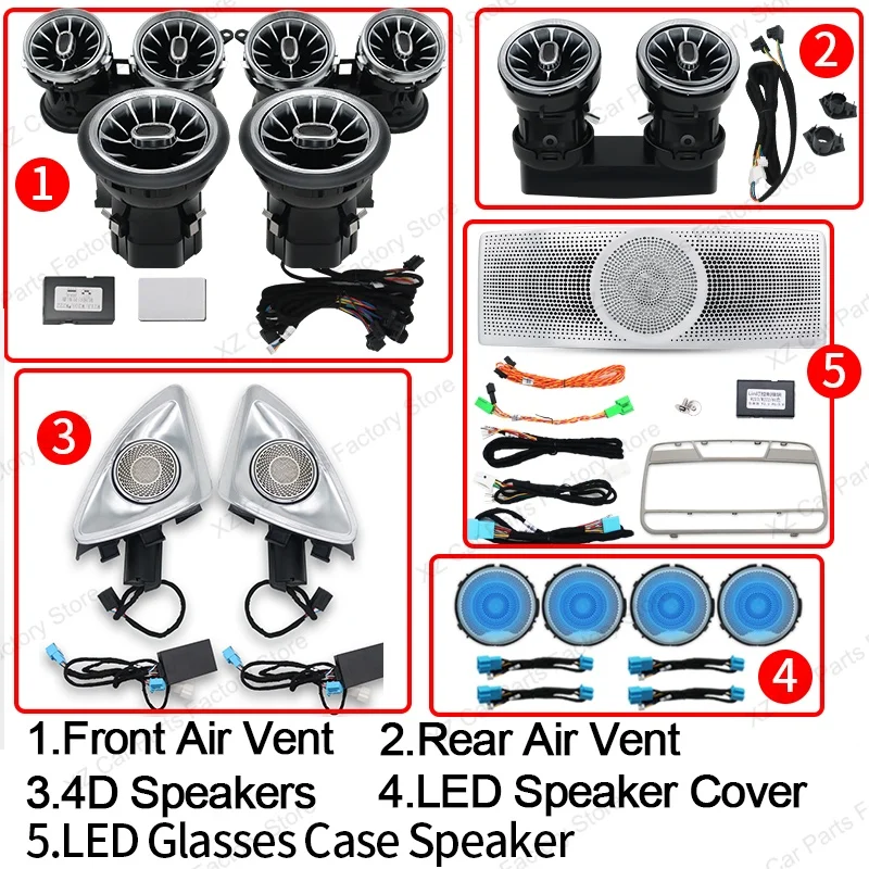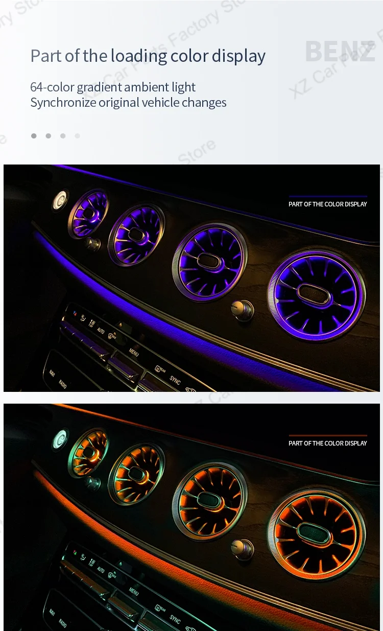 64 لون LED فتحات الهواء لمرسيدس بنز W213 E-Class كوبيه AMG E43 E53 E250 ثلاثية الأبعاد الدورية مكبر الصوت المتكلم الضوء المحيط الداخلي
