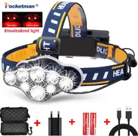 Pocketman كشافات 8 LED المصباح 8 طرق إضاءة مقاومة للماء رئيس مصباح رئيس مصباح يدوي فانوس مع الضوء الأحمر للتخييم في الهواء الطلق